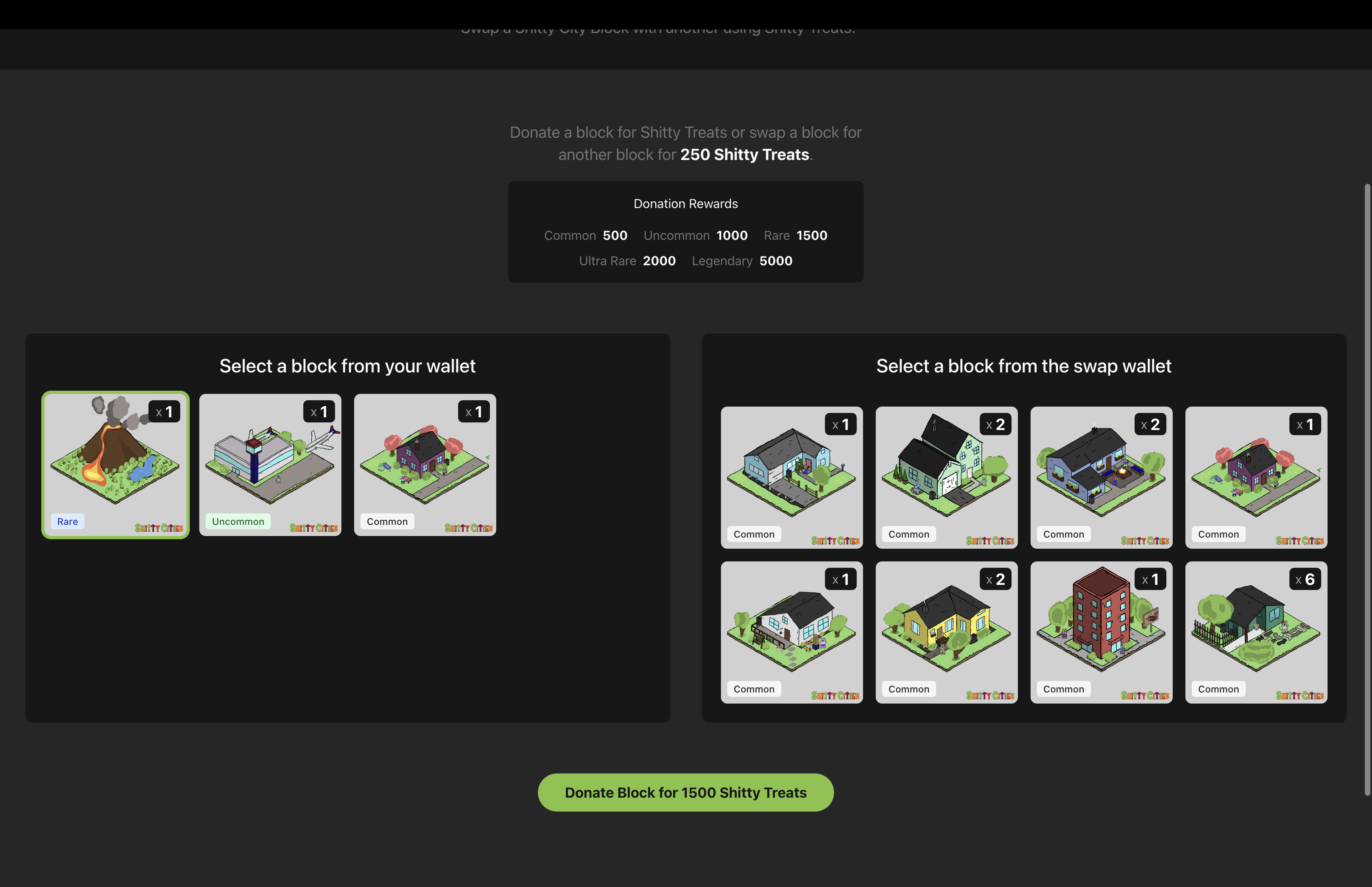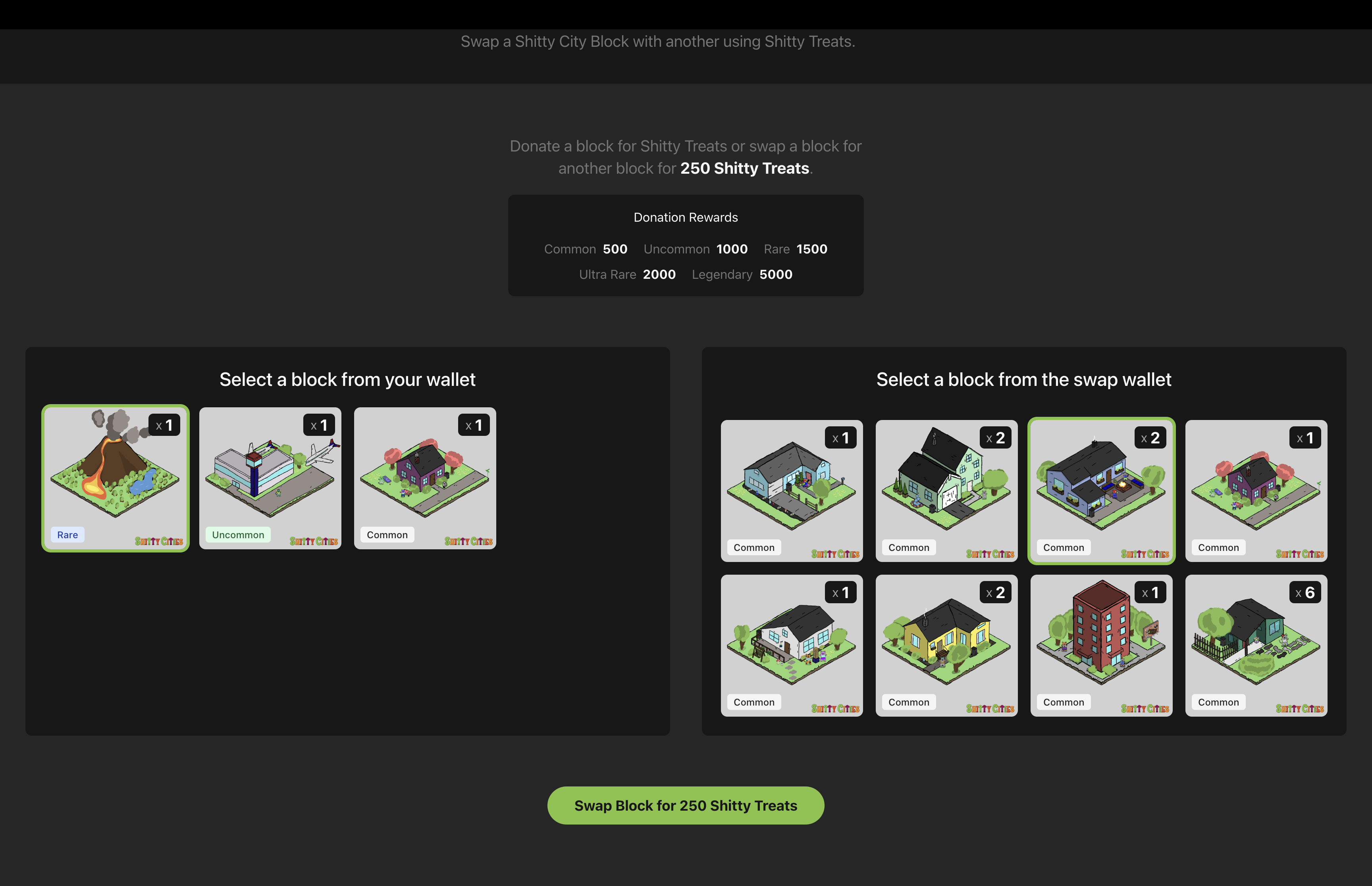 2. You can swap one of your blocks for any block in the swap wallet for a cost of Shitty Treats